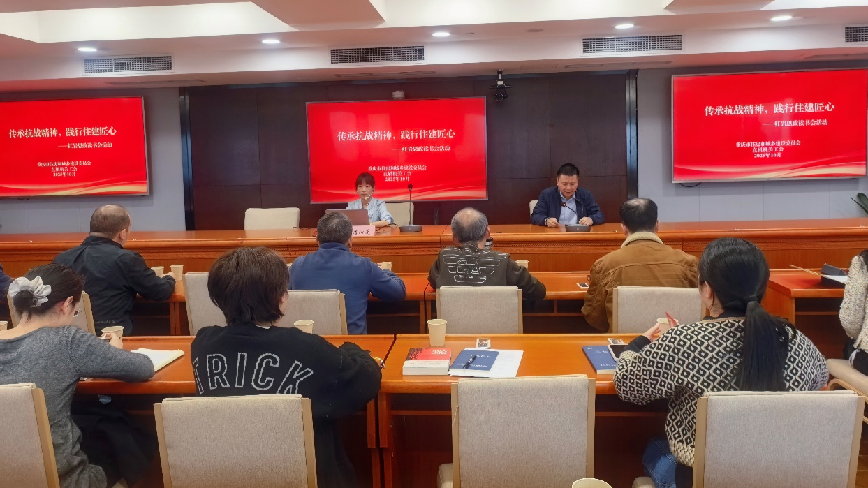 10月27日,在纪念中国人民抗日战争暨世界反法西斯战争胜利80周年之际,市住房城乡建委直属机关工会举办了“传承抗战精神,践行住建匠心”红岩思政读书会,专题学习曾荣获“中国好书”奖的文学作品《重庆之眼》。委干部职工近50人参加活动,二级巡视员蒋文荣出席活动。