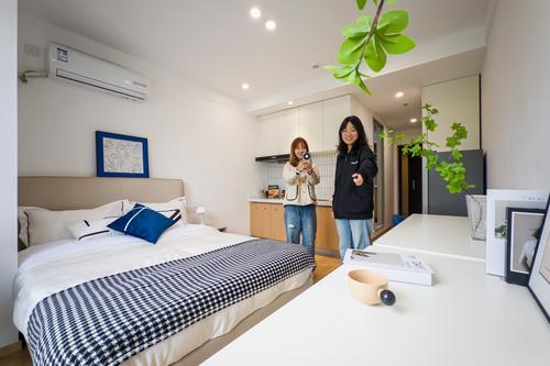 重庆嘉寓公司副总经理张乾华告诉记者,此次新开的两个项目都执行民水民电,每间房入住前均经过甲醛检测与治理。为提升租户的居住安全与服务体验,智慧监控系统接入辖区派出所,并配备送餐机器人,实现无接触配送。