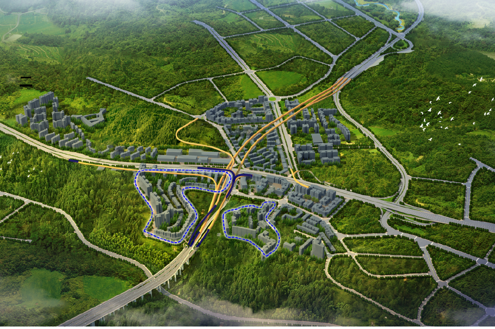 主要工程包括1座枢纽立交,2座简易立交,1座长隧道(同兴隧道,长约1.04公里)。