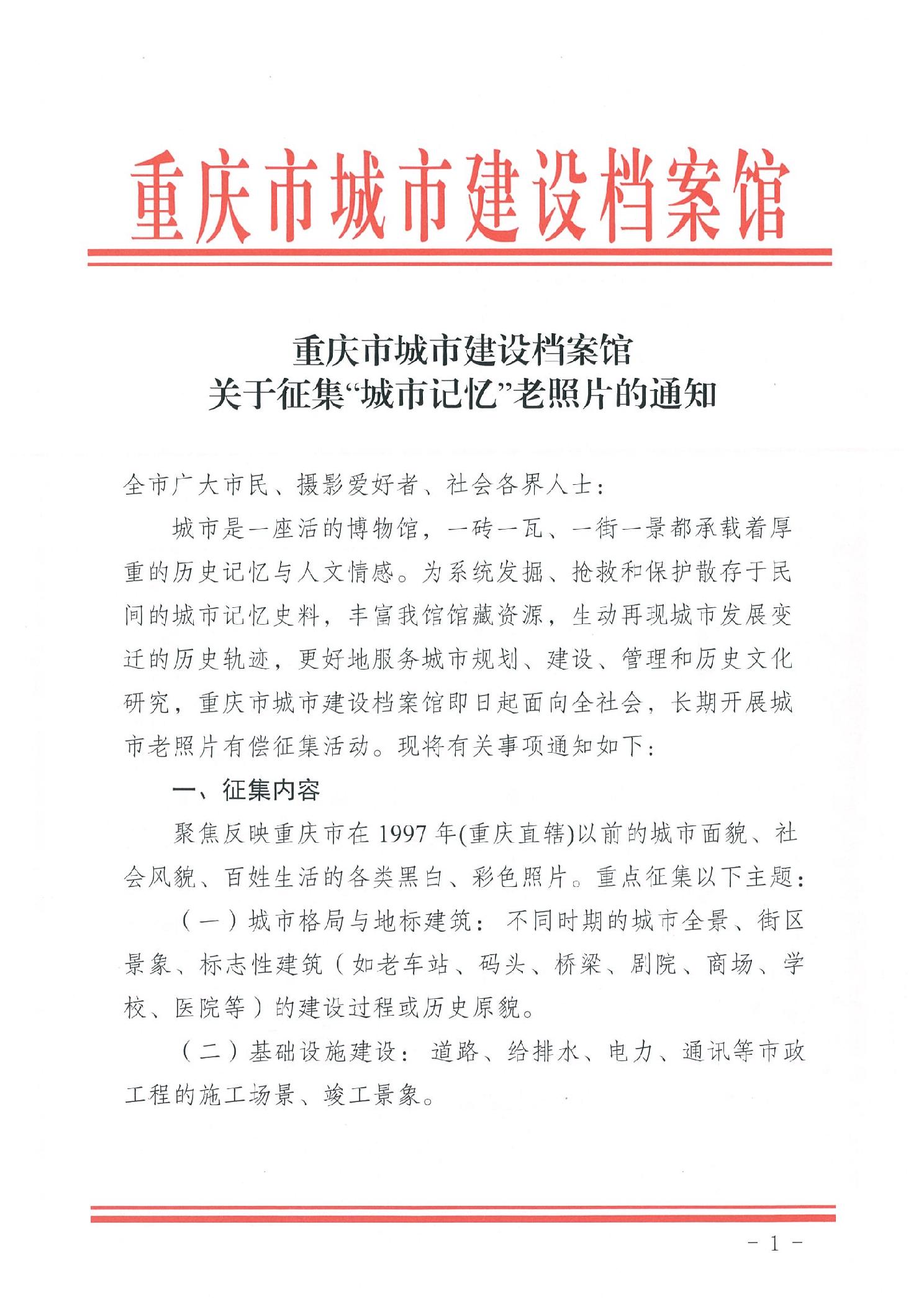 重庆市城市建设档案馆关于征集“已消逝建筑”影像及实物资料的通知